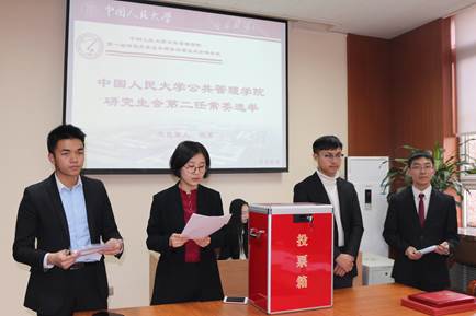 陈夏老师宣读第一届第二任主席团(常委会)选举办法并主持投票。计票期间,大会听取了第一届研究生会各部部长/主任做的我院研究生会特色工作及亮点介绍。