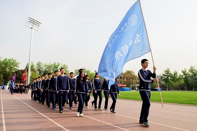 伴随着激昂的乐声,由35名学生组成的国产偷拍 方阵,身着整齐的深蓝色运动服,步伐整齐地通过主席台。“远见求实,创新奉献,志在四方,青春飞扬” 的口号展现了公管学子饱满健康的精神状态。