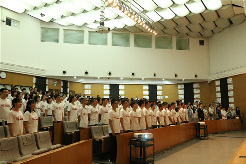 在校生代表胡逸帆以如何在大学生活中活出一个别样而丰富的自己为主题向在场的新同学讲述了自己人大公管三年的心路历程。他以“取法其上,得乎其中;取法其中,得乎其下”激励新生在第一年中要制定好自己的高目标;以“君子耻其言而过其行”告诫同学们不可浮躁炫耀自己的成绩,只有脚踏实地地努力,才能真正让自己不断进步;以“掘井九轫不及泉,犹为弃井”鼓励大家要坚持目标,始终保持学习的激情,做一名“目标、行动、坚持”合一的公管人。