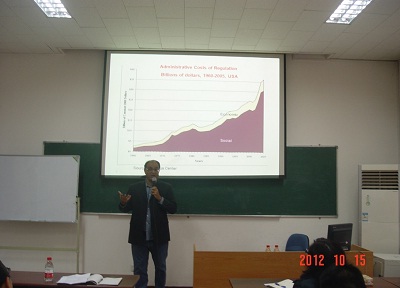 2012年10月15日下午,应我院行政管理学系主任孙柏瑛教授邀请,以色列耶路撒冷希伯来大学公共政策学院、政治科学系David Levi-faur教授在我院做了题为“监管型国家:概念清理及其全球扩展”的学术讲座。讲座由孙柏瑛教授主持,行政管理学系刘鹏副教授担任点评人,学院刘颖副教授、李文钊副教授、刘伟博士以及研究生三十余人参加了讲座。