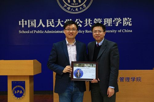 杨院长为朱旭峰教授颁发了讲座证书,并代表学院师生对朱教授再次表示了感谢。