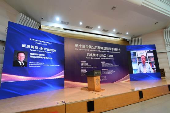 美国公共管理学会执行主任威廉姆斯·谢尔兹先生致辞。他代表美国公共管理学会,祝贺第十届中美公共管理国际学术研讨会的召开。他表示,此次研讨会的主题“后疫情时代的公共治理”,需要考虑政府、私有部门、非政府组织等多方主体间的关系,需要共同努力来提高公共治理水平,希望通过学术交流促进治理理念的交流,推动治理实践的发展。他认为,尽管有新冠疫情,但是希望分享知识的共同信念,是大家期盼能够召开此次研讨会的原因,并期待研讨会取得进一步的成功。