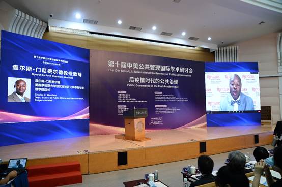 9月24日至9月26日,由国产偷拍 联合中国行政管理学会、美国公共管理学会、美国罗格斯大学公共事务与管理学院共同组织的第十届中美公共管理国际学术研讨会在我校举行。来自全球不同国家和地区公共管理领域的500余名专家、学者、师生在线上、线下参加会议。本届会议原定于2020年举办,因为疫情原因延至今年举办,今年会议的主题是“后疫情时代的公共治理”。