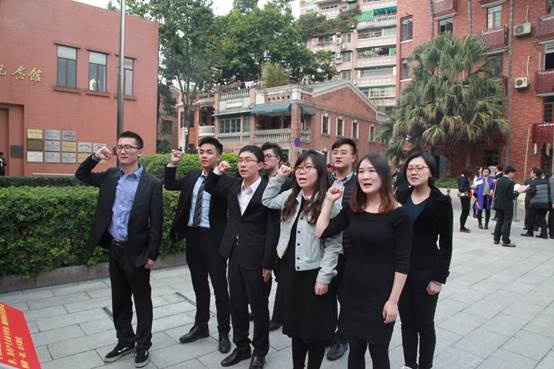12月26日下午,实践交流团参观了中国共产党第三次全国代表大会会址,对中国共产党的建立与发展过程进行了深入学习。参观结束后,学生党员还在党旗前重温了入党宣誓仪式。