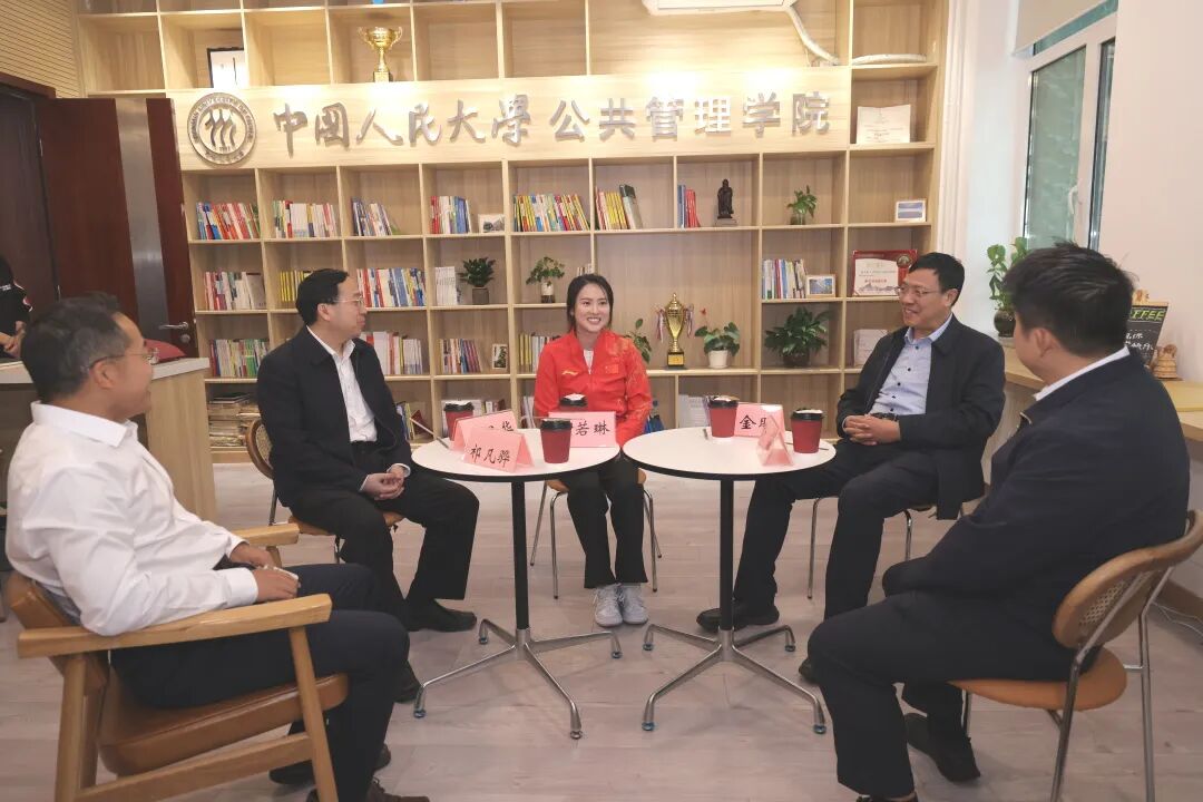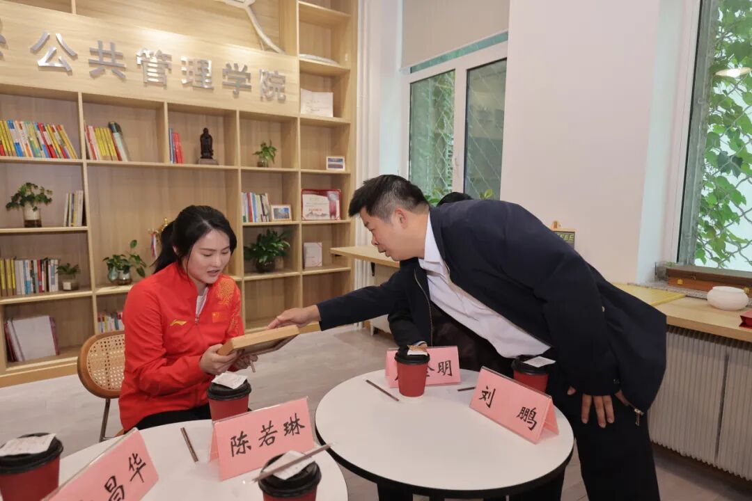 吉昌华书记强调,“从奥运冠军到国家队教练,陈若琳的成长印证了一代代人大学子‘实事求是’之志,公管学院‘培养对国家、社会有用的人’的育人理念。”严金明院长高度评价陈若琳作为“体教融合”育人模式的典范,称其展现了竞技体育与学术探索的双重卓越。时任班主任的刘鹏副书记展示出一张陈若琳与郭晶晶等昔日跳水世界冠军的合影,并重温其校园时光。这张照片承载的不仅是回忆,更是学院始终关注学生个性化成长的真实写照。她在学业中展现的专注力,与赛场上的拼搏精神一脉相承。时任系主任的祁凡骅教授指出,陈若琳的成功体现了公共管理学科在复合型人才培养中的探索价值,她的经历为体育与教育深度融合提供了生动范例。
